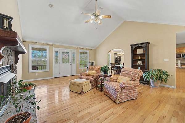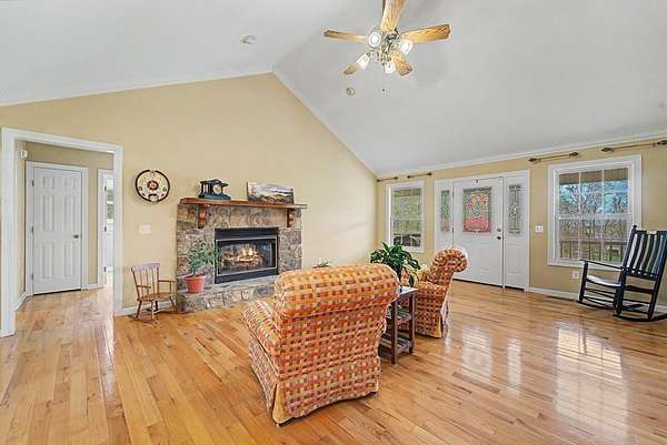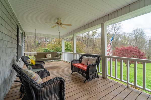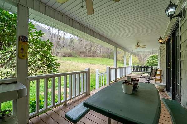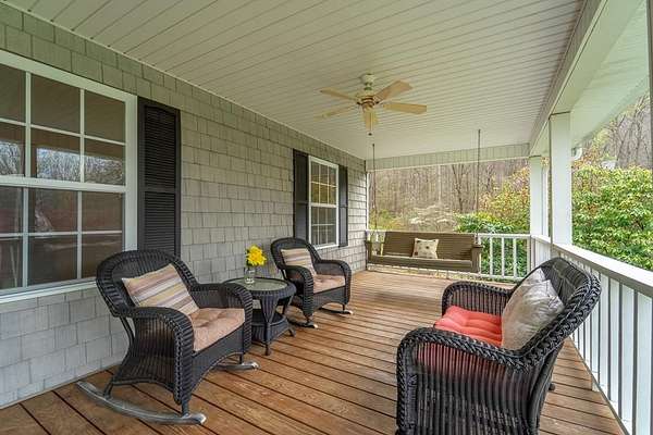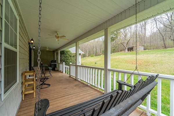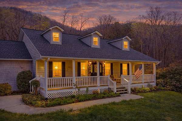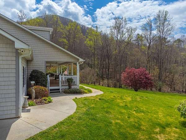 Experience the best of mountain living in Hayesville, NC with this 3 bedroom, 3 bath home on 3+ acres of gorgeous, park-like grounds. Bordered by peaceful streams on two sides, this property offers privacy & a serene natural setting. The split floor plan enhances comfort and functionality, featuring a spacious primary bedroom with ensuite bath and walk-in closets. The living room showcases a vaulted ceiling, stone fireplace, and wood flooring for a warm, inviting feel. The well-appointed kitchen features double ovens, ample cabinetry & a pantry, plus a formal dining room ideal for gatherings. A bonus sitting room provides flexible space for an office or den. Enjoy inviting porches & easy year-round access via paved roads. Additional features include a two-car garage, pole barn, and plenty of garden space. The finished basement offers a full bath and separate kitchen, perfect for guests or extended living. Convenient to Mountain Harbour Golf Course, Lake Chatuge & other outdoor recreational activities. A great hub for day trips to Franklin or Murphy in NC or Blairsville or Hiawassee in GA. Make sure to see this one if you're looking for a magical escape from today's hustle & bustle.
