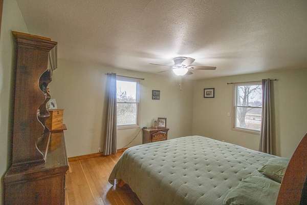 This 4.47-acre acreage just outside Boyden, Iowa offers a spacious and functional home with room to grow. The main floor features a comfortable living room that flows into a bright sunroom, along with a generous kitchen and dining area ideal for everyday living and entertaining. A main-floor bathroom and laundry/utility space add convenience, while the unfinished basement provides excellent storage or future finishing potential. All four bedrooms are located upstairs, including a full bathroom. Outside, the property includes a 28 x 56 Quonset building with a cement floor-perfect for equipment storage, hobbies, or workshop space-along with an attached garage.This acreage combines rural charm with everyday functionality just minutes from Boyden. Call us today to see it for yourself!