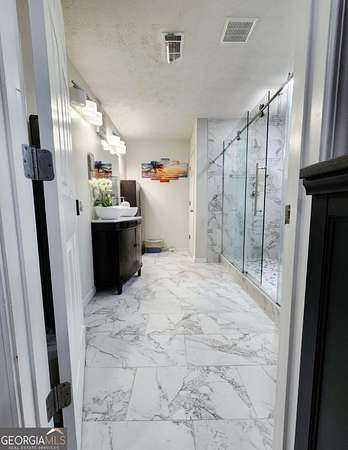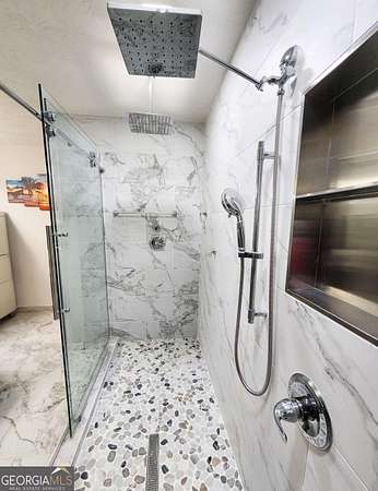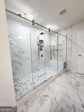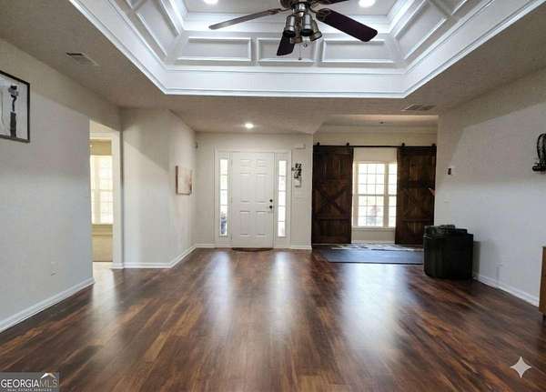 Discover stepless ranch living on over 1.5 private acres, offering comfort, modern upgrades, and the freedom to make the property truly your own. This home features charming stone accents, a covered front entry, a long private driveway, and a two-car garage, all tucked away in a peaceful setting. Step inside to a welcoming foyer that opens to a formal dining room and a spacious family room, highlighted by an intricate tray ceiling. The adjoining eat-in kitchen offers a breakfast bar, stainless steel appliances, plentiful counter space, and an additional dining area ideal for everyday meals and easy entertaining. A well-planned laundry room with storage cabinets adds convenience and functionality. The split-bedroom layout provides added privacy, and the primary suite is a true showpiece. Enjoy extensive trim work and a fully updated, spa-like bathroom featuring wide-plank marble-like tile, a large frame-less shower with dual rainfall shower heads and bench seating, a double vanity with dual vessel sinks, and thoughtful details throughout. Two additional bedrooms, a second full bathroom, and a half bath complete the interior. Relax year-round on the large screened-in porch, perfect for enjoying fresh air and peaceful views. Outside, the expansive fenced backyard and additional pasture space provide endless possibilities and room for animals, boat or RV parking, gardening, or future outdoor living enhancements. A shed and carport structure offer added storage, and with no HOA restrictions, design a space that meets your lifestyle. This home offers the best of both worlds: a quiet setting away from the hustle and bustle, yet just minutes from shops, restaurants, grocery stores, schools, golf courses, parks, and popular local favorites. A truly exceptional property with space and privacy.