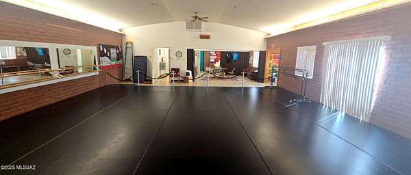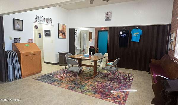 This rare lodge-style brick building on almost 2 acres features a durable, low-maintenance metal roof and inviting exterior details that convey character and community warmth. Zoned residential, the property has a proven track record as a church and is presently configured as a Performing Arts center, offering a broad spectrum of permitted and expandable uses. Inside, the open, adaptable floor plan centers on a large, flexible space ideal for events, classes, performances, gatherings, or creative work. This versatile gem presents an extraordinary opportunity for visionary buyers to craft a one-of-a-kind dream home that blends artistic heritage with contemporary comfort and functionality.