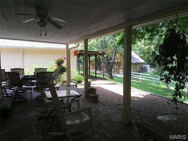 Gem. Charming Wildwood Homestead, for those who want to ride, hike, bike the horse trails in 1600 acre Greensfelder Park right across the street! Beautiful Custom built, all Wood Barn, six stalls, two oversized now, 23’ clearstory ceiling, potential loft. Prime land, rolling pastures with 1.5 miles horse fencing. Second antique barn. Traditional cottage-style custom home, cozy and well-built, front-to-back living room, large windows, crown molding, elegant fireplace, ash hardwood floors. Large back porch overlooking the barn, Total privacy. 1st floor master, large finished lower level living area w/ 'Vermont Castings' type gas stove. All new roofs, new hvac. 3-2-2 on three levels. A special Equestrian Lifestyle in an exclusive location.