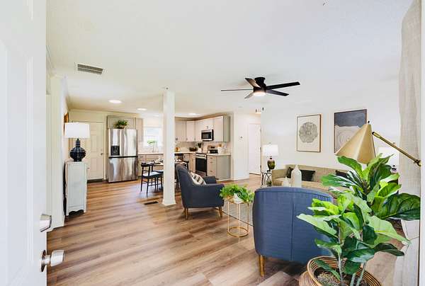 This remarkable manufactured home has been expertly retrofitted and renovated, transforming it into a stunning single-family residence. Spanning 1.86 acres, the property offers ample outdoor space for relaxation and recreation. With 3 spacious bedrooms and 2 full bathrooms, it provides comfortable living for families of all sizes.