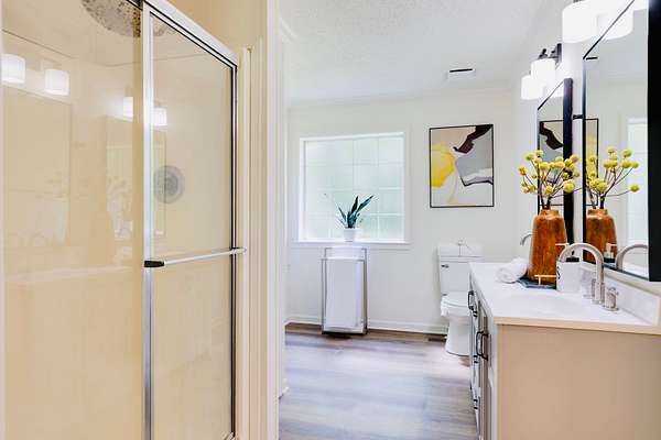 The home has undergone a comprehensive renovation, having been taken down to the studs and meticulously updated with new materials and finishes. Every detail has been thoughtfully addressed, from modern fixtures to contemporary design elements, ensuring a seamless blend of style and functionality. This move-in-ready property is a true gem, offering both modern comforts and a serene setting.