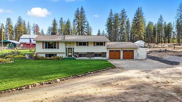 Must See!!.. Enjoy the peace and quiet of country living just 15 minutes north of Spokane in Deer Park, WA. This charming 5-bedroom, 3 bath home features attached oversized 2 car garage, newer roof, newer pellet stoves on both levels, 50 yr roof and spacious laundry room with dog washing station. Outside you'll find just under 10 acres of picturesque land, featuring a high producing well, 6 stall barn with tack room and ample hay storage, oversized carport, large metal snow shed for RV storage-hay etc., and chicken coop for your feathered friends! This is a perfect haven for horse lovers and families alike. This exceptional small ranch offers the perfect blend of country charm and practicality that rarely come available! Call your favorite realtor or us directly for a private viewing