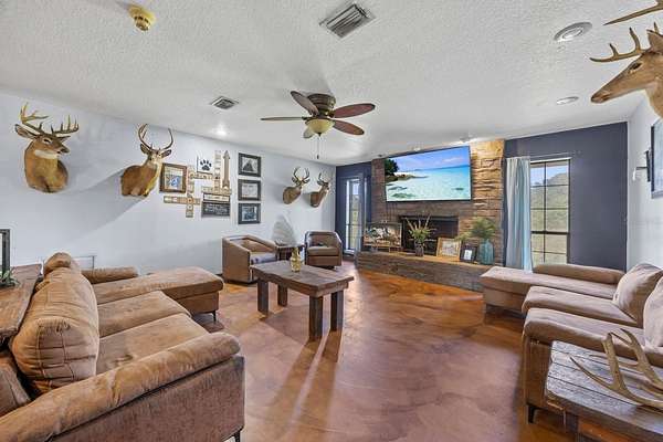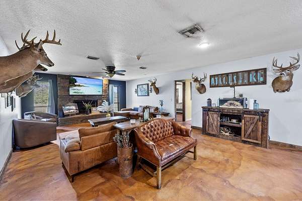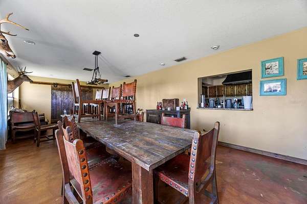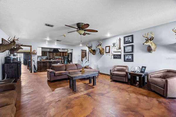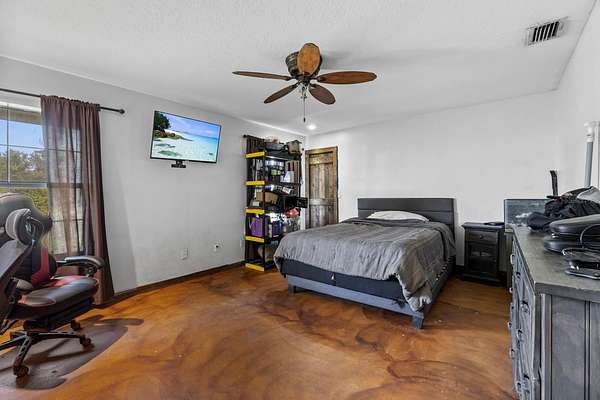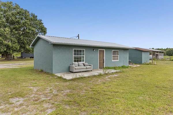 Welcome to your private slice of Florida living--this unique property offers two homes, a barn, storage building, and fenced acreage surrounded by upcoming growth. The main home (4 bed, 3 bath, 3,088 sqft) features beautifully stained concrete floors, updated kitchen and baths (2017), and a new roof (2022). The guest home (1 bed, 1 bath) has its own utilities, making it perfect for multigenerational living or rental income.