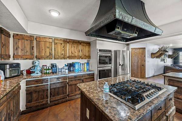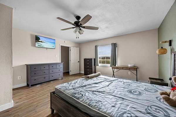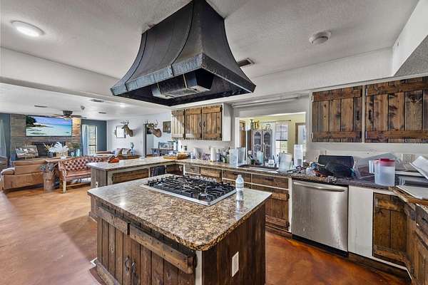 - Ceiling Fans(s), Eat-In Kitchen, Open Floorplan, Primary Bedroom Main Floor, Solid Surface Counters, Solid Wood Cabinets, Stone Counters, Thermostat, Walk-In Closet(s)