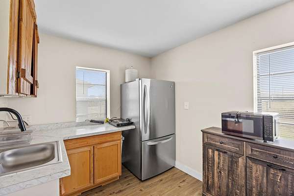 You'll find a newer well (2021), gas water heater (~4 yrs old), and AC units roughly 5-7 years old. The barn includes water access, and adding power is simple with minimal setup. The entire property is fenced, with the back portion open.