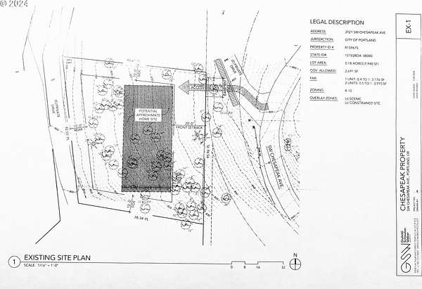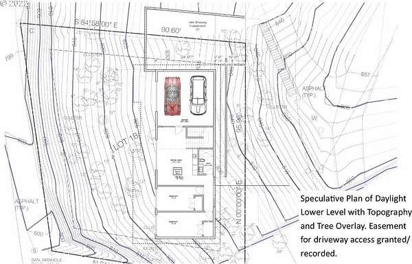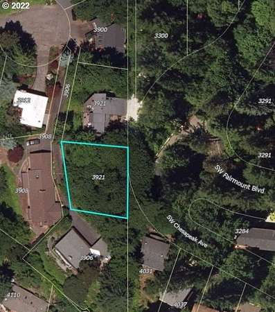 Greenhills lot w/territorial and sunset views poised in the desirable Council Crest neighborhood. Recent site plans from local architectural firm Giulietti Schouten Weber are available. Here's your opportunity to build a custom home, be it a main-level home with sunset views, a modular/container home, or a tiny home amongst the trees! Photos from and from conceptual renderings done in anticipation for potential building. Photos 1-2 are conceptual when engineer's reports were done. Photos 3-4 are conceptual photos for modular/container homes. There is not home on the lot currently. Buyer to do due diligence regarding buildability & permitting. Geo/Soils reports available and surveys completed. Recorded easements for access and utilities also available. Lot in between addresses 4031 and 3921 SW Chesapeak. Lot has a wood fence across it. Okay to walk down the top 4 concrete steps, (please do not walk further) and walk inbetween the left side of fence, and the right side of the telephone pole to access the lot. NOTE: Lot is overgrown and sloped so enter at your own risk and please wear stable shoes.