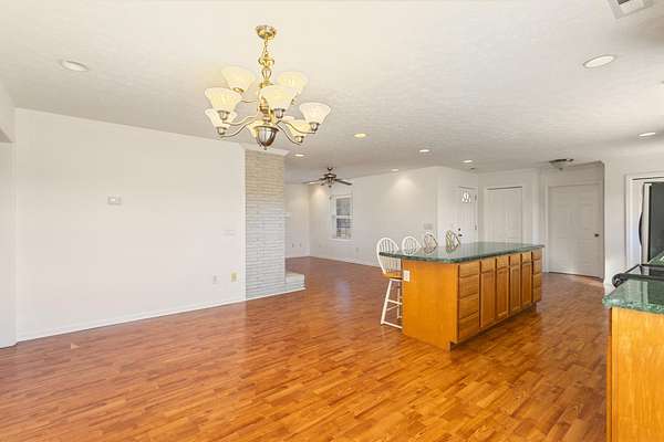 Looking for wide open spaces? This beautiful brick charmer delivers the space, comfort, and peaceful setting you've been searching for. The home features a large kitchen and dining area with an abundance of cabinetry and countertop space, perfect for gatherings, everyday living, and entertaining. The spacious family room with a cozy fireplace creates the perfect place to relax, while the open floor plan and plentiful windows fill the home with natural light and showcase the gorgeous countryside views. This home offers three generously sized bedrooms. The primary suite includes a large closet and a private bath with a 5-foot shower. Step outside and embrace the quiet beauty around you--this property truly offers the opportunity to create your own private, peaceful retreat.