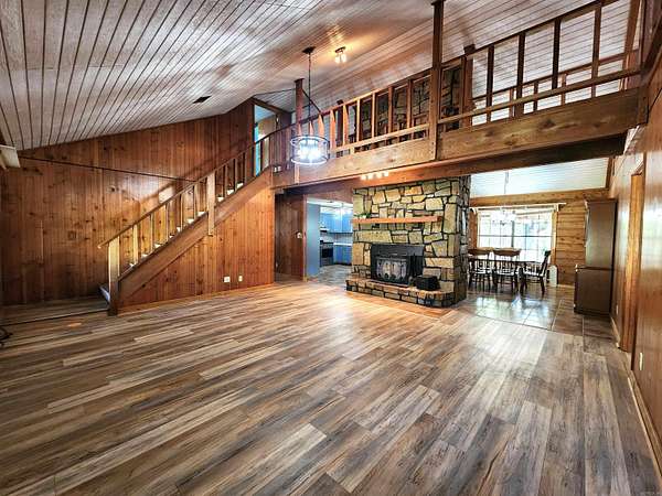 Est $1,570/moCountry living at its best! Built in 1987, this Satterwhite log home has 3 Bedrooms, 3 Bathrooms, and a bonus space- perfect for a gameroom or home office. The home has had many upgrades- including lvp flooring throughout most of the downstairs and both hall and master bathroom renovations. This 6 acre property has everything you hope to find in a country setting- beautiful views, plenty of space for a pool or a garden, a large shop and storage building, and a peaceful covered back porch. This property also has a fenced yard with a motorized gate for additional security. **The pool table, dining set, and all appliances including the freezer and washer/dryer will remain.