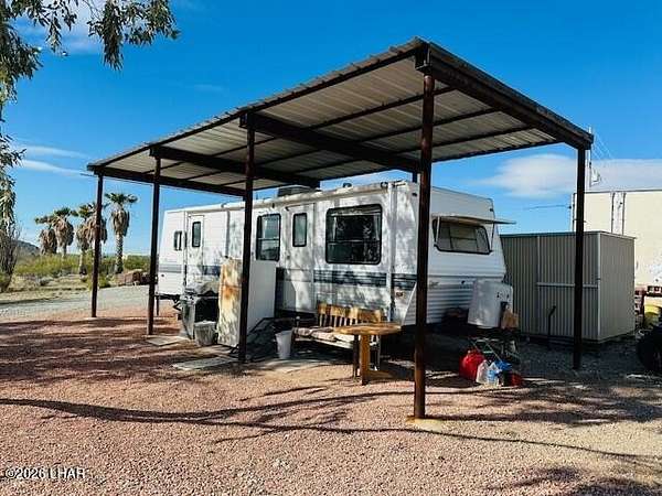 Est $1,165/moBeautiful 10 acres that sits in Harcuvar. This is horse property, currently has 1 horse corral. Gorgeous views along with gorgeous trails. 1 bedroom 1 bath, that faces the northeast. Beautiful desert landscaping surrounds the property. 14x33 metal RV cover. 2 RV hook ups. 1 RV will stay with the property. This place is priced to sell! Lets take a look today !