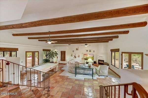 Beautiful territorial on 2.88 acres in the heart of the town of Cave Creek! 360 degree views! Wood vega beams accent the ceiling, fireplace is wood burning with an electric insert. There is a winter patio and a summer patio to enjoy the mountain views! Tucked away from the road along a paved driveway, you can find your peaceful haven! Three-car garage, but the third bay is currently a shop. Newer roof about 3 years ago with new polyurethane. Recirculating pump, two a/c's in house and one a/c in workshop. Freshly painted! And plenty of room for you ot put your own dream pool if you choose!