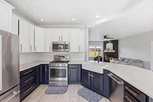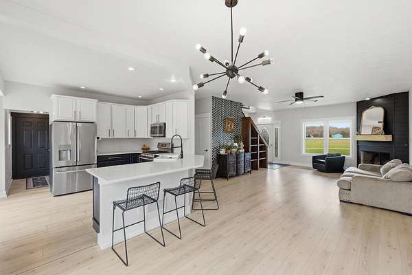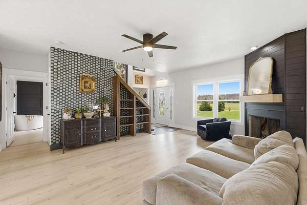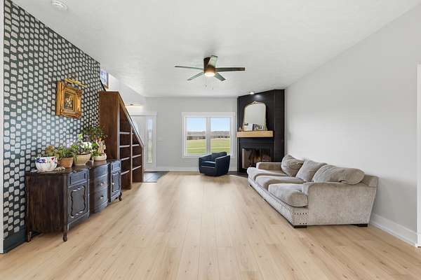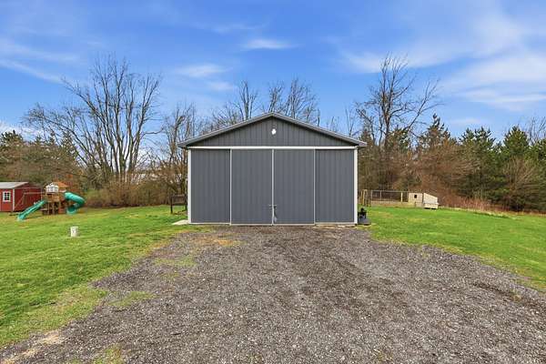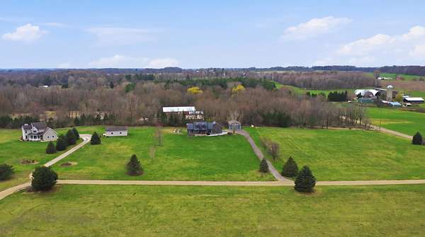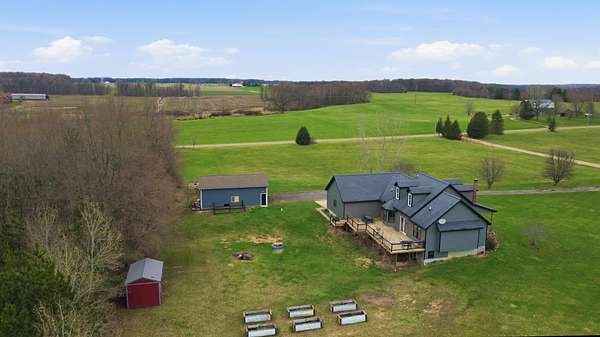 Set on just under two acres in a scenic rolling hills setting, this 4-bedroom, 3-bathroom home offers space, functionality, and key updates throughout. High ceilings create an open, airy feel, while the main living areas flow comfortably for everyday living and entertaining. The kitchen features durable stone countertops and ample workspace. All four bedrooms are well-sized, with three full bathrooms designed for convenience. A walk-out basement adds versatile extra living space. Outside, enjoy a newly built deck and plenty of room to relax or explore. The property also includes a 2-stall garage and a pole barn with cement flooring, perfect for storage, hobbies, or a workshop. Major updates within the last five years include the furnace, air conditioning unit, and water heater, offering added peace of mind. A great opportunity to enjoy country-style living with modern updates and room to grow. seller directs all offers to be held until 4/20 at 10AM
