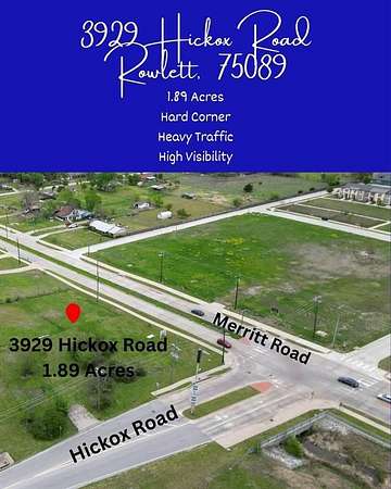 Positioned on a highly sought-after hard corner, this 1.89-acre commercial parcel offers exceptional visibility, access, and development potential in one of Rowlett’s fastest-growing corridors. Ideal for investors, developers, and builders, this property presents a rare opportunity to capitalize on the area’s expanding demand for multi-family, mixed-use, and urban residential development.