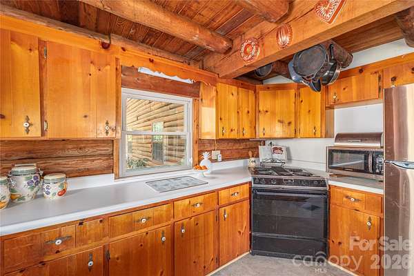 Escape to this charming log cabin nestled on beautiful acreage, offering the perfect blend of privacy and convenience. Located just 10 minutes to Sylva, 25 minutes to Waynesville, and approximately 30 minutes to Asheville, you'll enjoy peaceful mountain living with easy access to shopping, dining, and recreation. Step inside to find cozy cabin character and inviting living spaces designed for comfort. The bright breakfast area is the perfect spot to sip your morning coffee while taking in the serene views-a peaceful way to start every day. With a pond and plenty of outdoor space to explore, garden, or simply relax and enjoy nature, this property offers the mountain lifestyle you've been dreaming of.