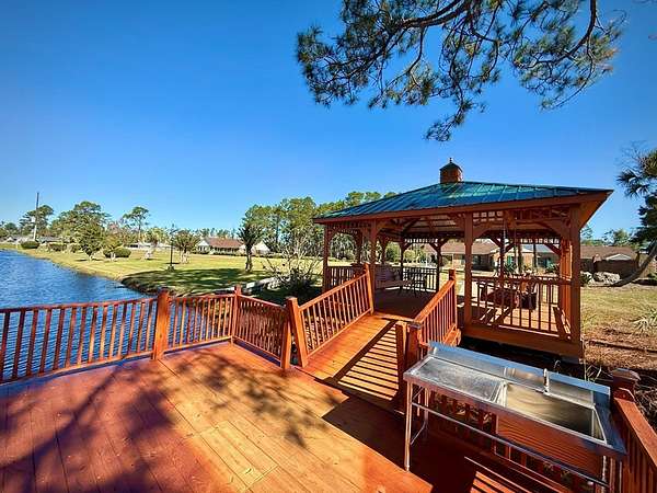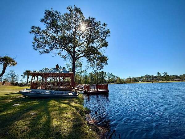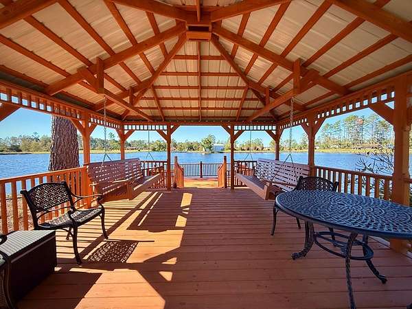 A Rare Waterfront Opportunity With The Perfect Blend Of Elegance & Style! Private retreat with income producing units on 3.55 acres. The beautifully maintained main home features 3BR/3BA & exudes comfort with 2520sq.ft. of inviting living, kitchen, & dining space. The primary suite showcases tranquil water views, a new walk-in shower & other updates. A second dwelling offers flexible living--currently divided into a 1BR/1BA apartment and 2BR/2BA unit, all spacious and ideal for guests or income potential, or easily converted into one home. Outdoor living shines with a sparkling inground pool featuring a new swim-out, picnic tables, a brand-new gazebo & floating dock overlooking the water. A one-car garage and shop with multiple bays provide abundant storage and workspace. Enjoy manicured landscaping, fenced pool area, and peaceful water views in every direction. Recent updates include new roofs, doors, paint, & pool liner to name a few. Appliances remain & HVACs are under 6 years old.