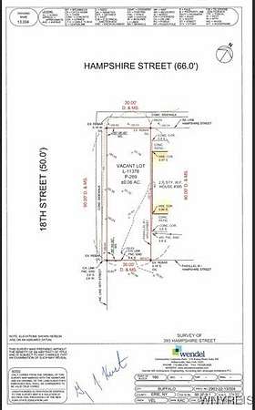 Est $206/moVACANT LOT FOR SALE ... Located at the CORNER of HAMPSHIRE ST & 18TH ST, this LEVEL LOT holds so much potential! Zoned N-2R, this residential lot could become your single (1-unit) or double (2-unit) home OR perhaps a driveway & garage for the adjacent 2-unit home w/o a driveway listed for FOR SALE (MLS #B1660177) OR buy & hold for future development opportunities. Please be sure to check the latest City of Buffalo Building Codes to confirm your intended use. The vacant lot to the rear of the property is a Buffalo Neighborhood lot, currently adding space between you and your neighbors. Close to restaurants & other conveniences.