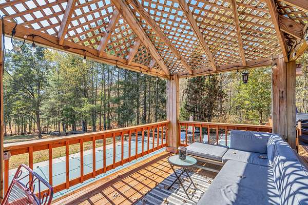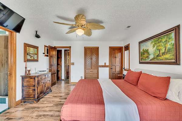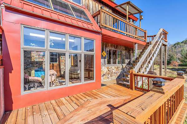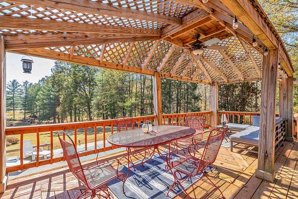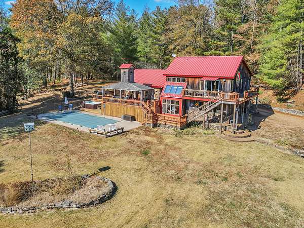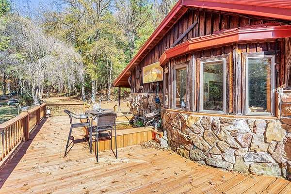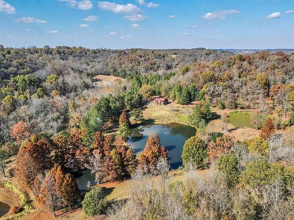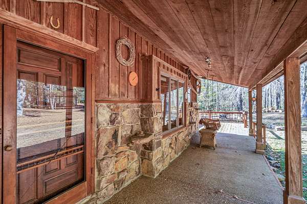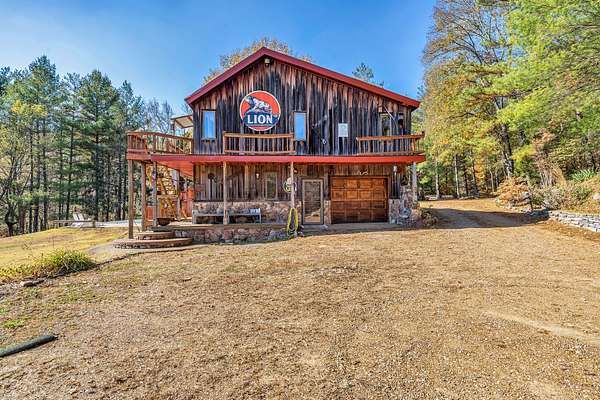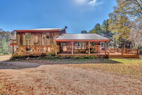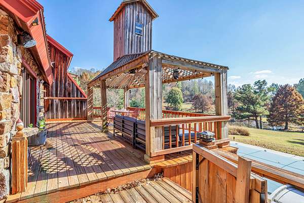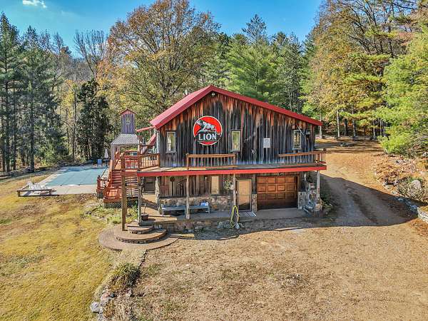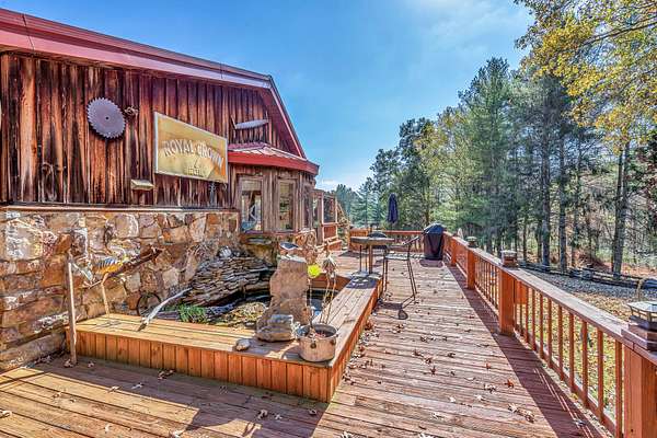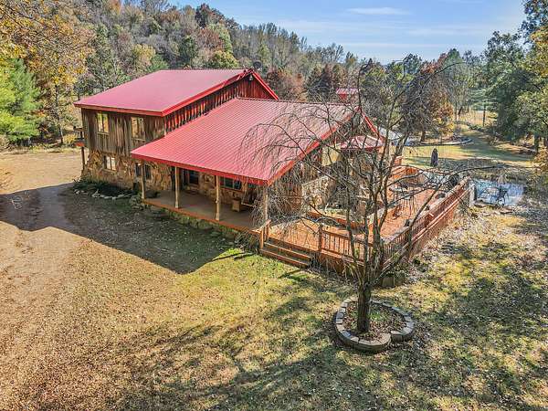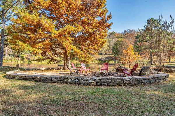 Grounds include 100' well, spring fed lake with bass, hunting posts, 3 hole golf course, multiple patio and decks, Koi pond, fire pit, detached shop/shed with Polaris and tractor (can convey), California fur wood and Arkansas Rock exterior. 10 minutes to historic downtown Pulaski. Currently serving as a very popular AirBNB, all items in house/on grounds can convey.
