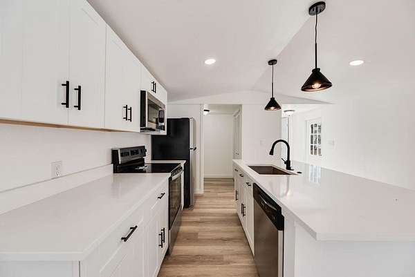 This Home is a truly one-of-a-kind gem offering modern comfort, flexibility, and an unbeatable location. This Previous Model Home features 2 bedrooms and 2 full baths with an open concept kitchen and living area designed for both functionality and style. The home has been completely renovated down to the studs, including new HVAC and wiring, upgraded drywall and luxury Vinyl Plank flooring throughout.