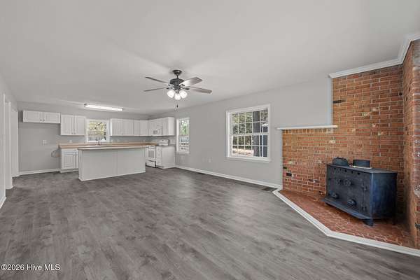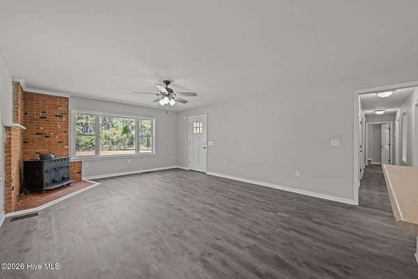 Enjoy peaceful living in this beautifully updated home with NO city taxes. This three-bedroom, two-bath property has been thoughtfully renovated with comfort and style in mind. Recent improvements include all new windows and vinyl siding, along with fresh interior paint that gives the home a clean, modern feel. Both bathrooms have been updated with new fixtures, while updated light fixtures, ceiling fans, and outlet covers add a polished touch throughout. The main living areas feature new LVP flooring, and vinyl flooring in both bathrooms for easy maintenance. Living room features a brick accent wall and a gas log converted cast iron stove, along with a large window letting in lots of natural light; or step outside to relax on the covered front porch...perfect for enjoying quiet mornings or unwinding in the evening. Don't miss out on this one!