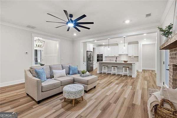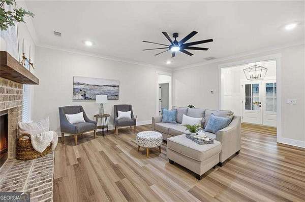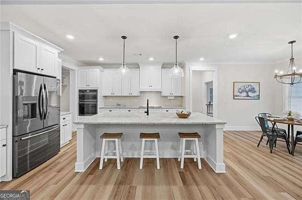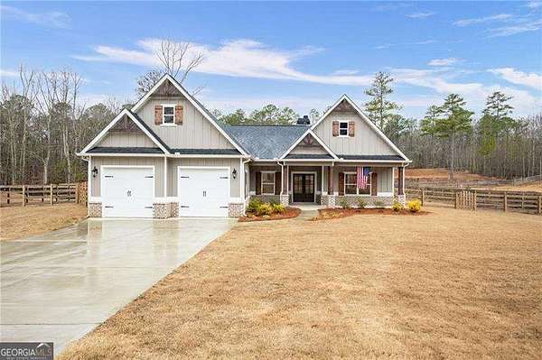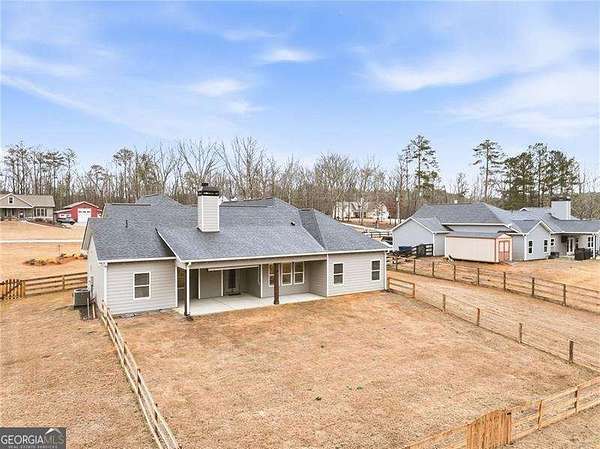 Modern Farmhouse Living on 3.5 Private Acres - No HOA Welcome home to this nearly new, beautifully crafted 4-bedroom, 3-bath farmhouse-style ranch, perfectly situated on 3.5 peaceful acres. Built just one year ago, this thoughtfully designed home blends timeless style with modern comfort - all with no HOA restrictions. From the moment you arrive, you'll notice the curb appeal - Hardy plank siding, a brick water table accent, architectural 30-year shingles, 5-inch gutters, and a spacious two-car garage. Step inside to an open floor plan filled with natural light and designed for easy living. The heart of the home is the stunning kitchen featuring white cabinetry, abundant storage, a huge island perfect for gathering, granite countertops, a farmhouse apron sink, and GE stainless steel appliances - including range, dishwasher, and refrigerator. Just off the kitchen is a huge walk-in pantry, offering incredible storage and organization space. The spacious living room centers around a wood-burning fireplace (never used!) and flows seamlessly into the kitchen and dining area. A versatile flex space provides the perfect spot for a home office, hobby room, or additional storage. Function meets everyday convenience with a mudroom area just off the garage, ideal for backpacks, boots, or dropping groceries. The large laundry room connects directly to the primary closet, creating a smart and seamless daily routine. The split-bedroom layout offers privacy, with the primary suite tucked away on one side of the home. The owner's bath is truly special - featuring a soaking tub, ceramic tile shower, and a split double vanity with 15 drawers! for incredible storage space. The generous primary closet offers ample room and connects directly to the laundry room for added convenience. On the opposite side of the home, you'll find two additional bedrooms and baths, while upstairs features a fully finished fourth bedroom with its own full bath and closet - perfect for guests, teens, or a private retreat. Luxury vinyl plank flooring runs through the main living areas, ceramic tile in the baths, and carpeted bedrooms for comfort. Step out back to a covered porch overlooking a double-fenced area, a private target range, and an additional almost two acres of wooded space - giving you room to roam, play, or simply enjoy the quiet. Additional features include: Zoned HVAC with three separate thermostat controls - Generator plug with 50-amp breaker - Fully electric home (no gas) If you've been looking for newer construction, acreage, privacy, and modern farmhouse style - this one truly checks every box.