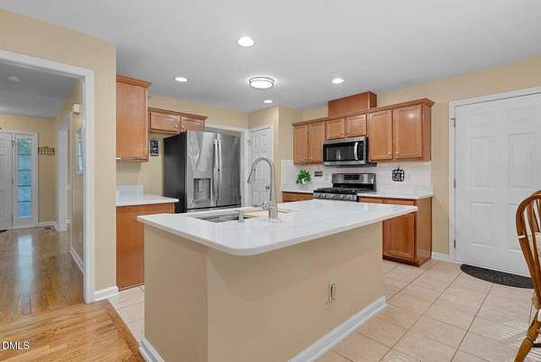 Welcome to this beautifully maintained home nestled on a generous lot in Clayton! This home offers 4 spacious bedrooms plus a versatile bonus room and 2.5 baths, with a layout designed for both everyday living and entertaining. Enjoy the flexibility of formal dining and a cozy eat-in kitchen, along with a dedicated office space downstairs--perfect for working from home. The kitchen is a true highlight, featuring upgraded quartz countertops, a large single-basin sink, stainless steel appliances, a gas stove, and a center island for extra prep and gathering space. Set on a generous 1.55-acre lot, this property backs up to peaceful woods, offering added privacy and a serene backdrop. The yard also features mature fruit trees, including two apple trees, a cherry tree, and a peach tree--perfect for enjoying fresh, homegrown fruit right at home. Relax or entertain on the back deck while taking in the natural surroundings. Best of all--NO HOA! Don't miss the opportunity to own this spacious home with room to spread out, both inside and out.