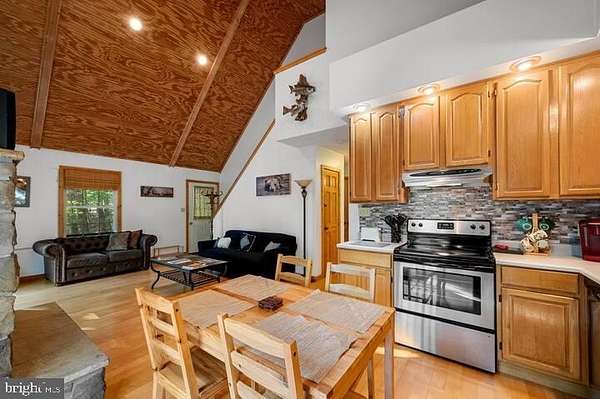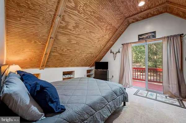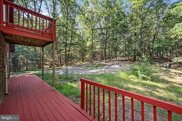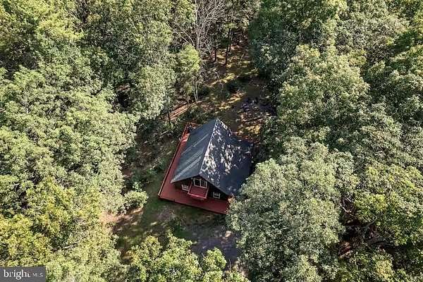 Adorable log cabin situated on over 5 acres for peace, quiet, and relaxation! Perfect for full time living or for a place to escape the hustle and bustle. The HOA states the property may not be used for an AirBnB. The front porch extends across the front and wraps around to the back of the home. You are greeted with an eye catching stone gas fireplace that extends to the high, vaulted ceiling. The kitchen and living room have hardwood floors and sliders that open to the deck. The open concept is perfect for entertaining and on the cool nights being able to open the sliding glass doors allows even more living space! There are 2 bedrooms, full bathroom with tub/shower, and stackable washer/dryer on the main level. Upstairs is the primary suite with sliding door that leads to a private balcony to enjoy that perfect cup of coffee, and a half bathroom. There is an extensive whole house water filtration system located in the crawlspace. The septic was pumped in 2023. The HOA is $100/yr. Internet is provided by Hardy Net. Explore the 5.26 acres the property offers, and still head over to Lost River State Park that is only 4 miles away for more fun and adventure! The property is currently an AirBnB due to being grandfathered into the HOA, as a result showing days/times may vary and are limited at this beautiful time of year.
