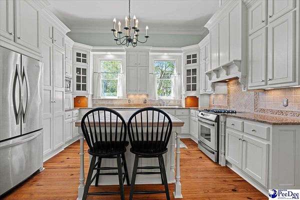 Est $1,869/moBeautiful maintained historic home in the heart of Darlington, SC. Built ca. 1891 in the Eastlake style, this home is full of historic character including original heart pine floors, 12' ceilings, and stained glass windows. The updated kitchen boasts a tile backsplash, island, gas range, and granite countertops. Relax on the wrap-around porch with swing or the screened porch, enjoying the expansive 2.93+/- acre lot. An 1,100 sq ft detached two-story private guest home with a bathroom, kitchen, and large bedroom completes this property. Square footage is an estimate and if important please measure. All other information to be verified by buyer.
