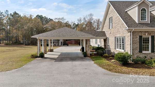 Discover an uncompromising level of Southern luxury in this extraordinary 10,000+ sq ft estate set on 10 peaceful and private acres in Kershaw, ideally positioned between the historic charm of Camden and the convenience of Lancaster. A beautifully designed circle drive-finished with elegant pavers at the entrance-guides you past the stately port-cochere and into this distinguished residence, accompanied by three complementary structures: an all-brick workshop, a classic barn, and a charming outbuilding. Inside, sophistication unfolds across expansive living spaces, where refined craftsmanship and timeless architectural details create an atmosphere of quiet grandeur. The home boasts three full kitchens in the main house and multiple laundry rooms, offering unmatched convenience and versatility for hosting, multigenerational living, or everyday ease. Three distinct wings provide flexibility for guests, private offices, or creative spaces, while a private in-law suite features its own garage and separate entrance for added independence. The primary suite is a sanctuary of its own, complete with a private library and luxurious his-and-hers bathrooms, each thoughtfully designed for ultimate comfort and indulgence. The dramatic foyer, framed by soaring ceilings, features a light lift providing effortless access to the chandelier-a refined touch perfectly suited to an estate of this caliber. Outdoor living takes center stage. A sparkling, heated, and chlorinated pool is complemented by an impressive pool house offering a full kitchen, full bath, wood-burning fireplace, and outdoor shower. Beneath the pool house, a pull-through garage adds both convenience and functionality. Multiple screened-in porches invite seamless indoor-outdoor living throughout the seasons. This remarkable property features 8 bedrooms, 9 full bathrooms, and 2 half baths, ensuring ample space for family, guests, and hosting in complete comfort. The home is further enhanced by numerous recent upgrades, including a new roof (2025), six HVAC units (two from 2020, one from 2021, one from 2022, one from 2025, and the pool house unit from 2009), and five water heaters-three tankless units from 2020 and two 40-gallon electric water heaters from 2009. Please note: the property's well pump is not currently operational. A rare offering of privacy, craftsmanship, and timeless Southern elegance, this estate is more than a home-it is a lifestyle, a retreat, and a legacy. Due to limited photos in MLS, ask your agent for an unbranded link to view all photos.