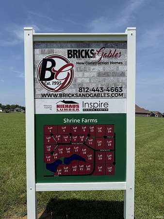 Est $446/moWonderful chance to snag the largest lot (Lot 27) still available in Shrine Farms! This 1.78 acre lot on a cul-de-sac is perfectly flat and ready to build your dream home on. Covenants allow you to pick your own builder, if you prefer. Don't miss your opportunity to live in one of Terre Haute's premier neighborhoods! Easy access to I-70, approximately eight minutes to Rose Hulman Institute of Technology and 15 minutes to Indiana State University.