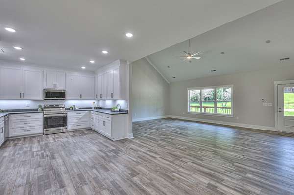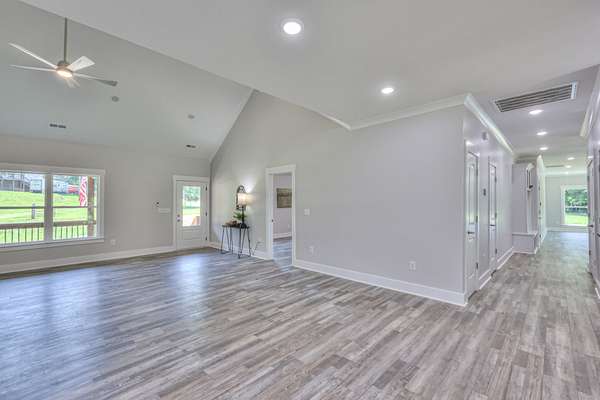 4.75% Seller and lender rate buy-down special, fixed for the life of the loan. Beautiful new construction home on 2.25 acres. Very traffic flow Infront of the home. All rooms have 9-foot ceilings with about a 15-foot vault in the living room. Brick home with large rooms throughout. This is one of my favorite floor plans with no wasted space. From the front door, walk into the large vaulted living room with two large bedrooms on the right and a large bedroom suite on the left. Each bedroom has good space, closets, and built-in shelving for kids' toys. The main bedroom features 12 built-in drawers in the walk-in closet, along with shoe and personal item cubbies. Each of the two bathrooms features a makeup vanity table, and a half bath is located as you enter from the garage. Park in your large garage and walk into a house designed for convenience. You will find a changing area for taking off your coat and shoes, and with a large sunroom to your left and the main gateway to the house on the right. All custom cabinets and vanities with granite tops for quality and convenience. This house features a spacious covered porch and patio, perfect for enjoying quality family time--high-end 20-mil layer vinyl plank flooring throughout, with no carpet. The garage floor has been sealed, and the crawl space has been encapsulated. The kitchen has a good-sized pantry. This property has a big yard with a wet-weather creek in the back. Welcome to Hampshire, TN, the little Gatlinburg of the south, but without the traffic and without city taxes. As a resident of Hampshire myself, I can tell you the people are great, and so are the churches and schools. The all-in-one unit school is so convenient for families with kids, K-12
