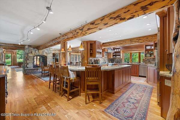 Est $85,827/moInitially operated as a B&B, this property can accommodate many family members and guests. Now a private residence, this improvement offers great flexibility with multiple kitchens, privately situated bedroom suites and living areas, three wood burning fireplaces, a 6-car garage, guest house and several water features. This property has protected Grand Teton views and it borders open space on two sides. The prime location off the Village Road provides close proximity to downtown Wilson, Teton Pines, commercial shopping, the bikepath, Snake River access and the Jackson Hole Mountain Resort.