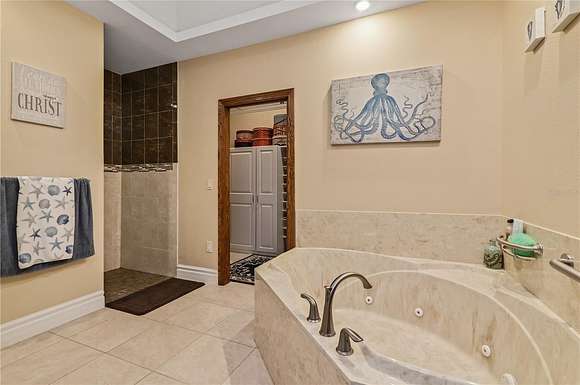- Accessibility Features, Ceiling Fans(s), Crown Molding, High Ceilings, Open Floorplan, Primary Bedroom Main Floor, Solid Wood Cabinets, Split Bedroom, Stone Counters, Tray Ceiling(s), Walk-In Closet(s)