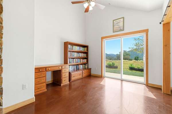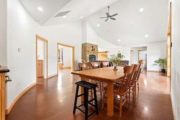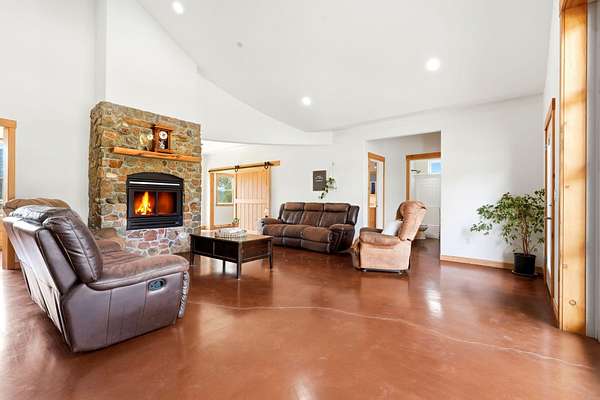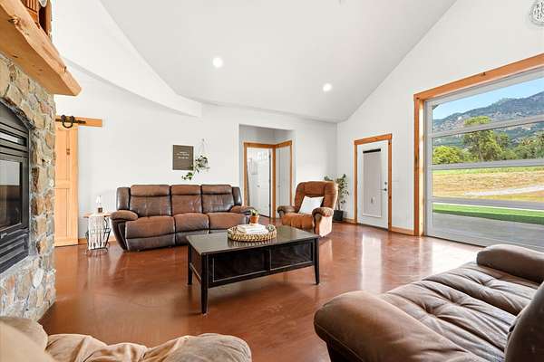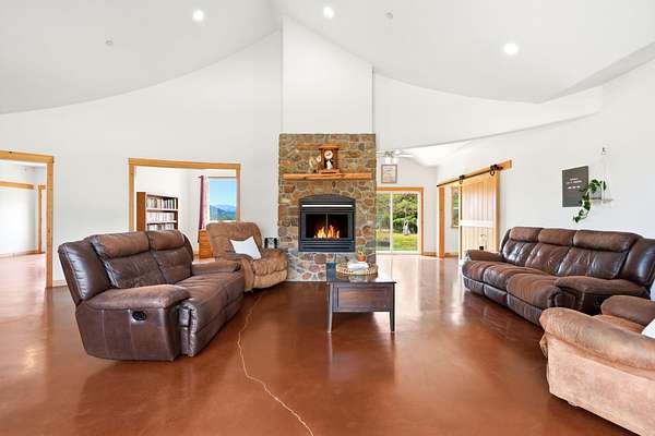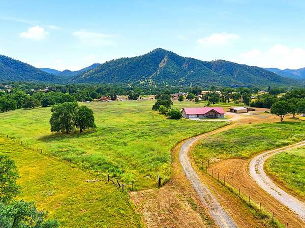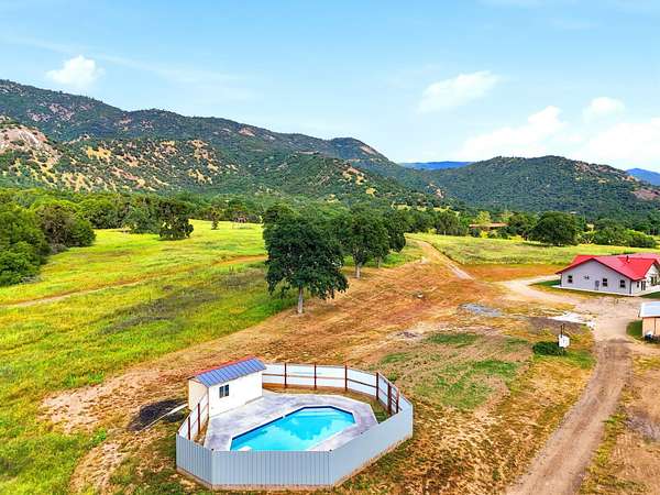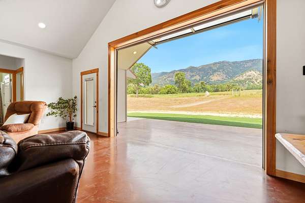 Nicely appointed on 20 private, usable acres with expansive McKenzie Ridge views, this custom 2,100 sq. ft. estate balances high-end luxury with rural utility. Ideally located minutes from Hwy 180, Dunlap School, and the post office, the property features dual access points and is a short drive to Kings Canyon or a straight shot to Valley shopping. The home is built for longevity with a premium standing seam metal roof and fire-hardened exterior. Inside, vaulted ceilings and polished concrete floors meet local sugar pine trim. The living area features a stone fireplace and an operable glass roll-up door that opens to a covered patio plumbed for an outdoor kitchen. The chef's kitchen boasts a 36-inch Wolf range, dual dishwashers, and custom cabinetry. Designed for accessibility, all bathrooms including the granite-clad primary suite feature zero-step, floor-level transitions. Modern comforts include 9' ceilings, a dedicated library, a media room, and hydronic heated floors powered by a greenhouse wood stove with propane backup. The property offers high potential for agricultural and equestrian use, featuring 12-14 acres of newly fenced pasture sowed in oats, cleared of rock over the last three years. The infrastructure is professional-grade: a massive 40x84 footprint including a 1,300+ sq. ft. sheet rocked garage with an enclosed bonus room, a tall 30x40 shop, a 36x36 stable barn, and a horse walker. Supported by a 100 GPM well (per log), the deer and rabbit-proof berry field (blueberries, blackberries, strawberries, raspberries) is equipped with full irrigation and a Dosatron nutrition injection system. The blueberries, now in their 4th year, produced an impressive 1,800 lbs last season. Leisure is equally prioritized with a greenhouse featuring an integrated hot tub and an 8.5-foot-deep pool with a diving board, privacy fencing, and a nearly finished pool house ready for your final touches. Square footages & room count may vary, to be verified by Buyer.