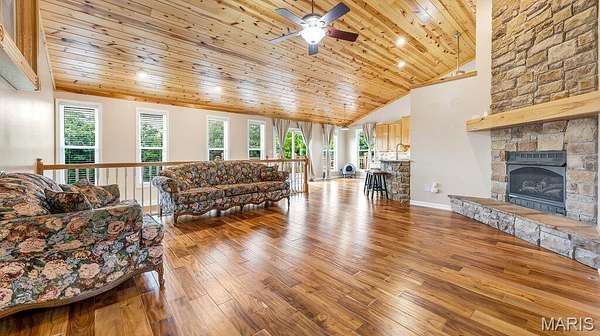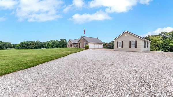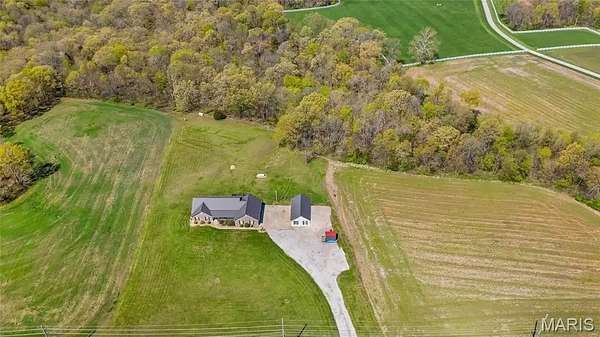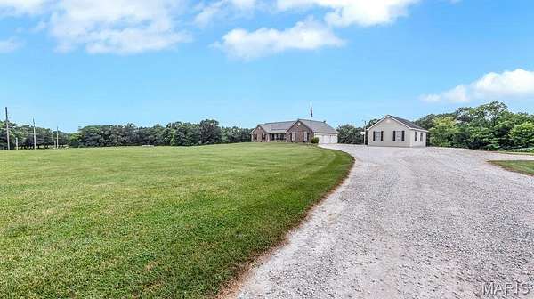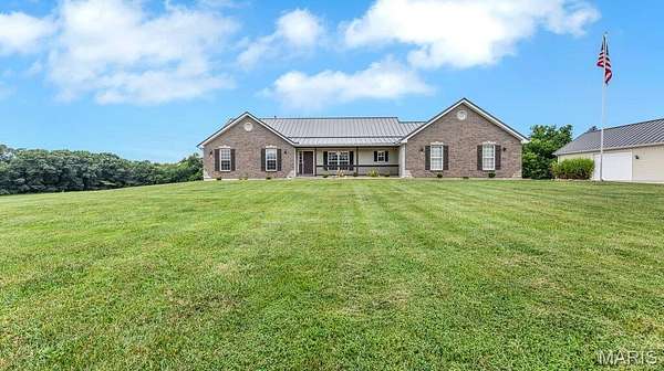 Thoughtfully designed & custom w/details that speak to the strength, quality, & low-maintenance nature of the home, it features over 3,400sqft of finished living space. On the main floor you'll find 3 spacious bedrooms, including the owner's suite w/ walk-in closet & luxury bath, vaulted living room w/tongue & groove ceiling, formal dining, spacious kitchen & laundry. The walk-out LL is ideal for entertaining. Complete w/a wet bar, rec room, living room, 4th bedroom, full bath, & built-in office workspace.. Enjoy your morning coffee on the deck, watching deer & turkey wander while bald eagles soar quietly overhead. End your days w/cozy evenings in front of the floor-to-ceiling stone fireplace... reminding yourself just how peaceful life out here can be. In addition to the 3-car garage, a 22'x40' detached workshop w/oversized doors offers extra space for hobbies, & extra storage or potentially a home business. This property has plenty of space for the large garden you've been dreaming of... chickens, goats, a couple cows or even horses. Located in the sought-after Francis Howell SD, 15 minutes from I-70, & under 15 min from Washington, the Katy Trail, & local wineries. And yes--this quiet country haven comes equipped w/fiber internet (a rare rural win)!