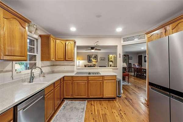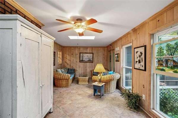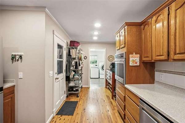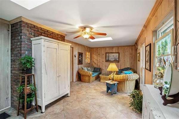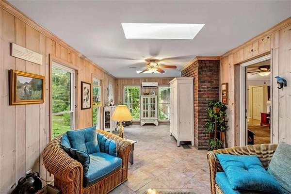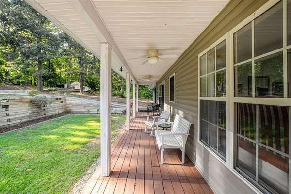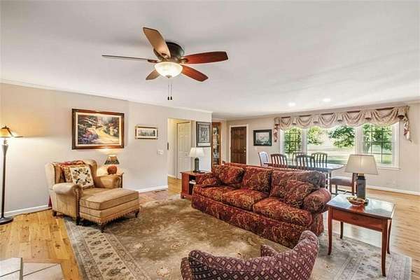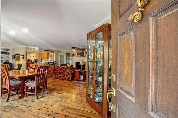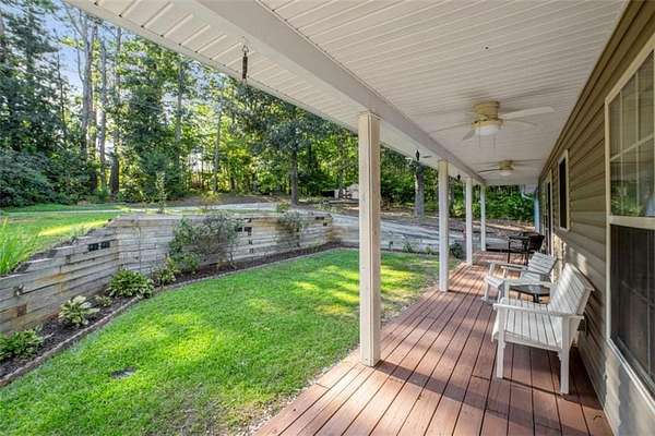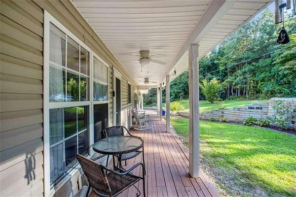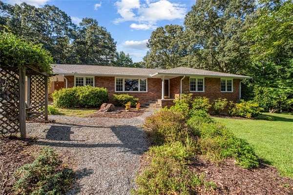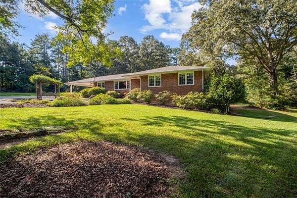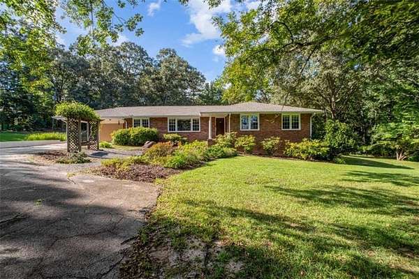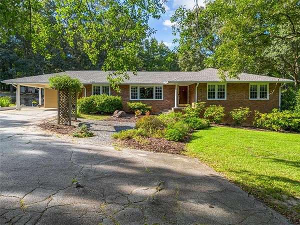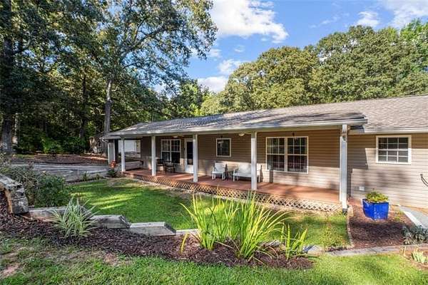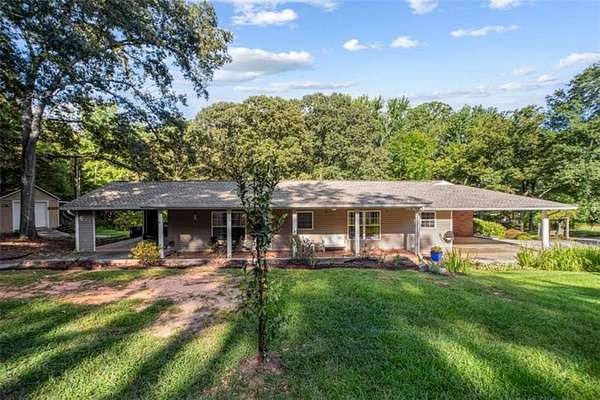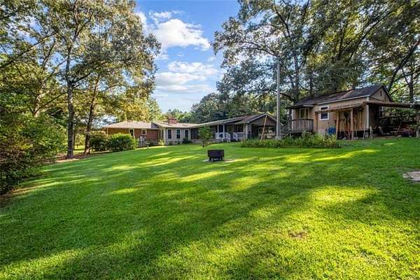 A rare and versatile estate on 5.88 private acres in Snellville. This unique property features a 3-sided brick main home and an attached guest house connected through a shared laundry/mudroom. The main home offers front side brick construction with a brand-new roof (2024), 2 bedrooms and a versatile bonus room, a cozy living room with fireplace, a kitchen with Corian countertops, a main bath with Corian shower and vanity, and a hall bath featuring a cast-iron tub with vintage lavender tile. Additional highlights include a bright sunroom, a spacious covered back porch, a partially finished basement with room for a workshop or storage, a separate A/C unit and water heater, a well-maintained 2-car covered carport, and thoughtful updates throughout. The attached guest house offers its own private entrance via a separate driveway, vinyl siding with a new roof (2024), a spacious living room, a large bedroom with oversized closet, two full baths, and a kitchen with granite countertops. It also features its own A/C unit and water heater, a covered side porch, and a 1-car covered carport, making it fully independent and comfortable for long-term stays or income potential. Outdoor features include a 16x16 powered workshop, RV parking with dedicated septic hookup, a storage barn along with older barns, an old covered well, and mature plantings including five blueberry bushes, a fig tree, and a pear tree. Surrounded by wooded privacy, this property offers peace and space while remaining conveniently located. Most appliances remain, making this estate truly move-in ready for owner-occupants or investors seeking flexibility, space, and endless possibilities. Near shopping.