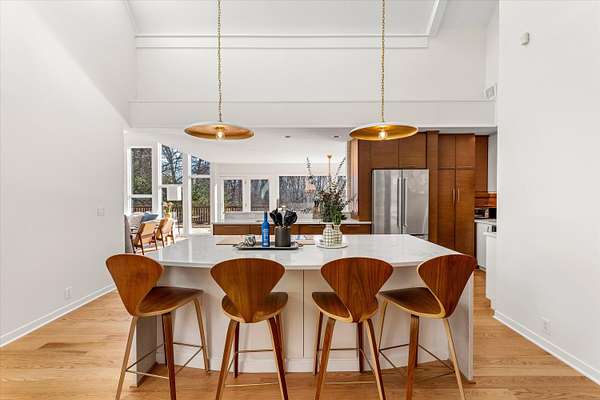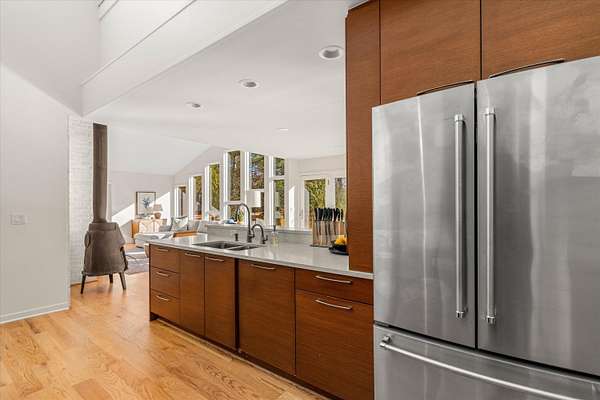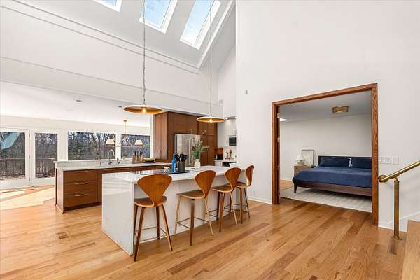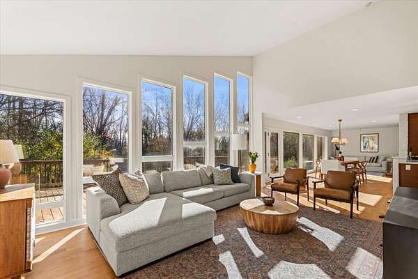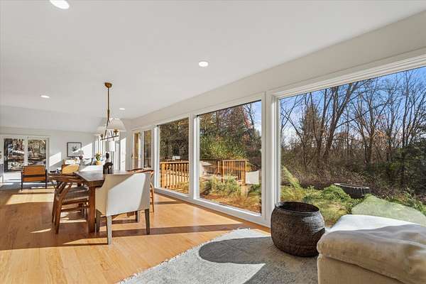 Beautiful, fully furnished, ranch home on a Gorgeous 3-acre property available to rent! Welcome in to the upper level front entrance, garage and bedroom/office. Come down the stairs to the updated, large, light filled kitchen next to the bedroom and bathroom suite. Down the hall are the 3 smaller bedrooms, main bathroom and laundry room. Enjoy the serene forest views from the screened in patio or take in some sun on the back deck. Peaceful, gardens and trees are visible through the floor to ceiling windows in the living room and dining area. This home is truly stunning during any season and will be a pleasure to settle into. All furniture in the photos is included in the lease along with lawn/yard maintenance and snow removal. Schedule your showing today!