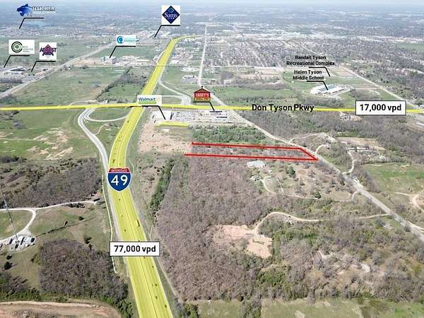Est $18,230/moFor sale is a 7.92-acre parcel in a prime location in Springdale. The property is situated south of Walmart Neighborhood Market, adjacent to Don Tyson Parkway and the Highway 49 corridor. The seller has finalized and secured approval for a mini-storage facility on this parcel. The plans and rights for the facility will be conveyed with the sale of the parcel. Additionally, there is an additional 5 acres that can be negotiated as an extension to the purchase.