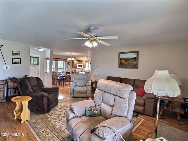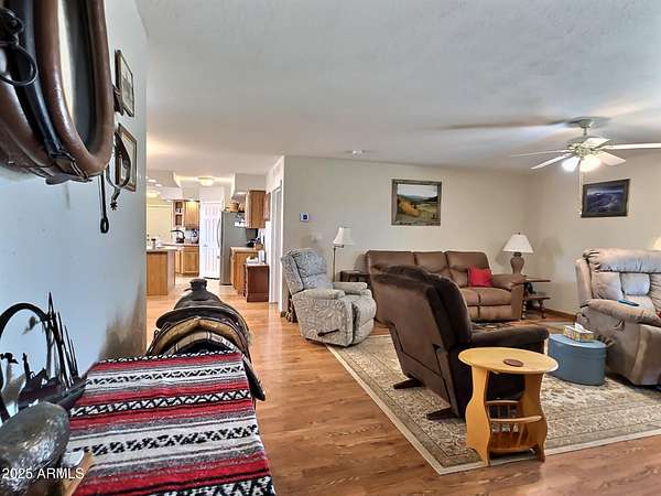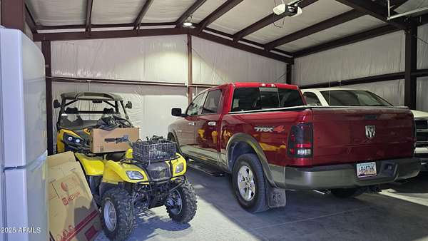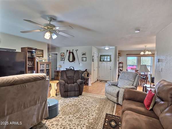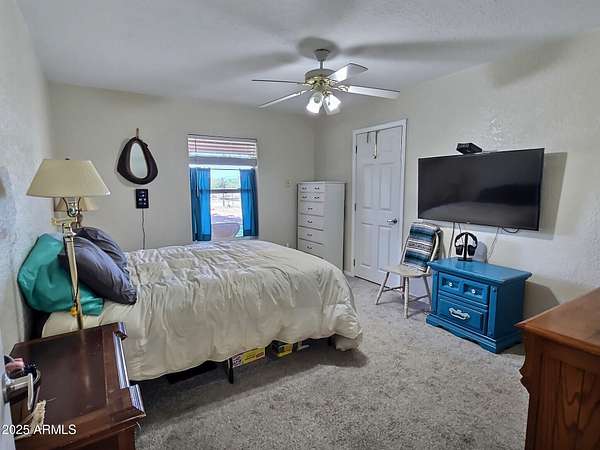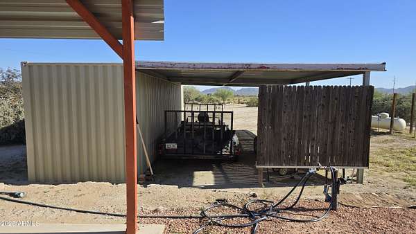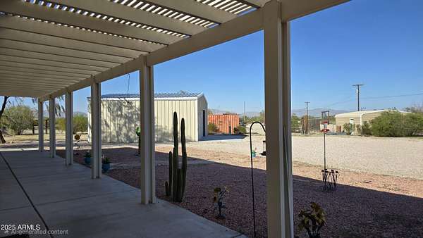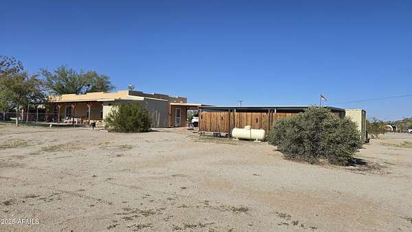 5 acre parcel with spacious 1800 s.f manufactured home with MANY recent updates! 3 bedrooms, 2 baths, and 2-car carport. Additional buildings for parking & storage. Main suite is separate from the other bedrooms with. Updates include new AC/heat pump, new appliances, laminate flooring in kitchen and high-traffic areas, and carpet in the bedrooms. New slider & windows. Full-length covered porches for those breezy sunset evenings. Landscaping with rock accents enhances the fenced yard. Detached 30x30 workshop with 10-ft roll-up door, additional 40-ft shipping container with lean-to can hold 3 vehicles, plus 10x16 workshop with refrigerators and freezers. The roof was resealed and this home is move in ready! Enjoy a shared well. No floodplain. Open rural surroundings, not too far from town!