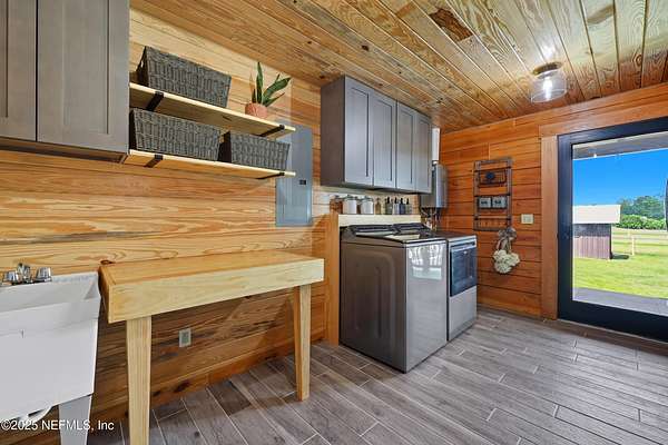 - Dishwasher, Disposal, Dryer, Electric Range, Gas Water Heater, Microwave, Refrigerator, Tankless Water Heater, Washer