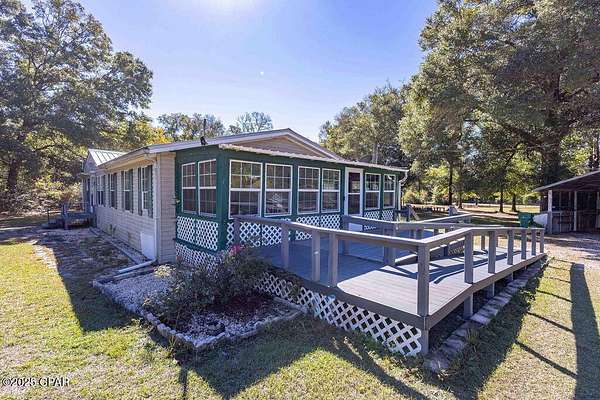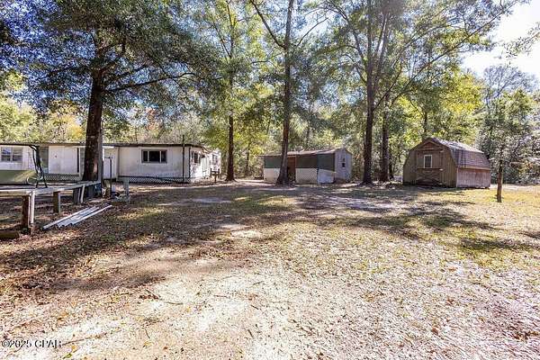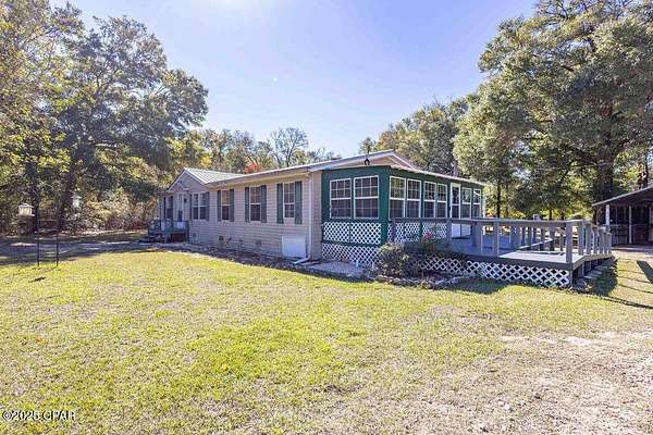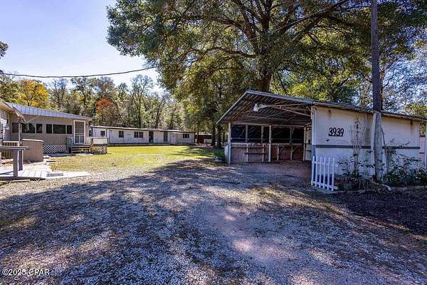 Discover the possibilities with this spacious double-wide featuring multiple additions, including an enclosed sunroom-style porch with windows and an accessible ramp, a Florida Room, and a bonus room. The roof is 3 years old and the HVAC is 4 years old. Located on a corner lot, the seller indicates the paved-road side may have potential for commercial use (buyer to verify). Property includes multiple outbuildings and two older singlewides used for storage (no value). Home offers built-in shelving throughout and is being sold AS-IS, cash only. Comes fully furnished, including contents of the home and outbuildings. So much storage and flexibility-ready for its next owner!