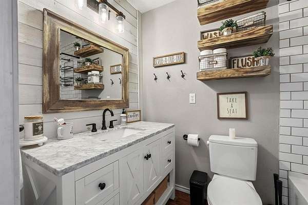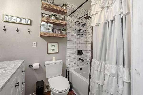 Outdoors, enjoy a fenced backyard, an additional carport and a stocked one-acre pond with bass, catfish, crappie, bluegill, and perch. Located in Caddo Basin Water District