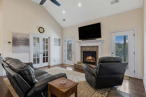 Charming 3BR/2.5 BA, One Level home with Scraped Hardwoods, Granite Counter Tops, Stainless Appliances, Plantation Shutters, Open Floor Plan with Great Room featuring Gas Fireplace, Enjoy the Back Covered Porch with Hot Tub with room for Entertaining. Two Car Attached Garage on the Main Level, unfinished Basement with Tandem Roll Up Garage Door. This beautiful Hardy Plank Home is Nestled 4.88 AC backing up to the Scenic Duck River. Deeded boat access to the River.