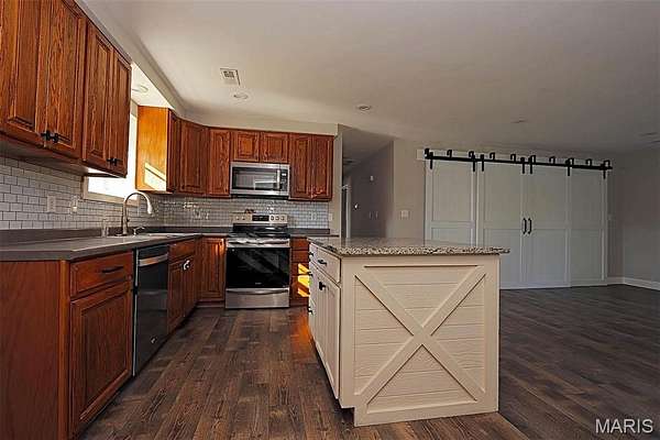 - Country Kitchen, Dining/Living Room Combo, Granite Counters, Kitchen Island, Laminate Counters, Open Floorplan, Shower, Walk-In Closet(s)