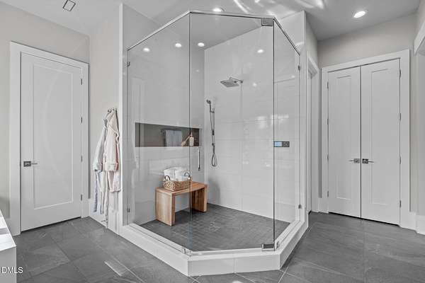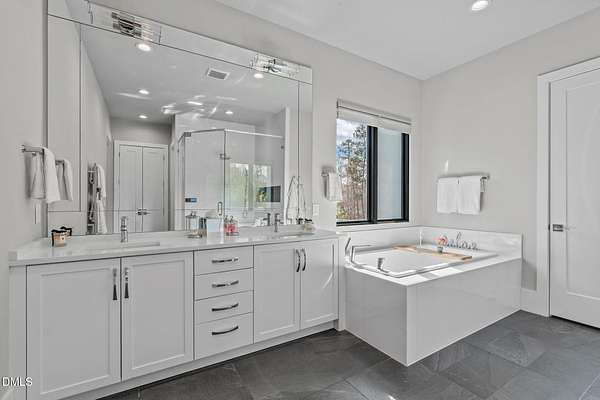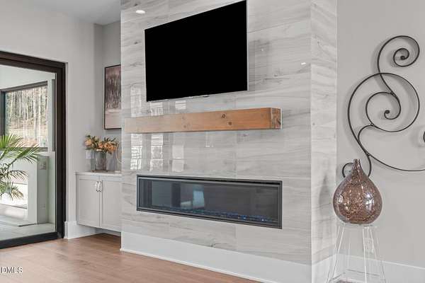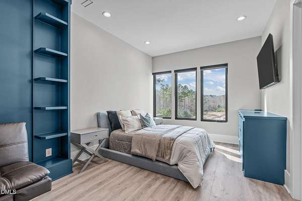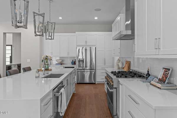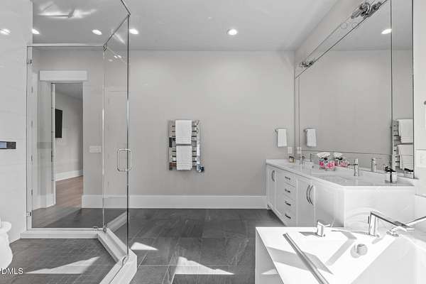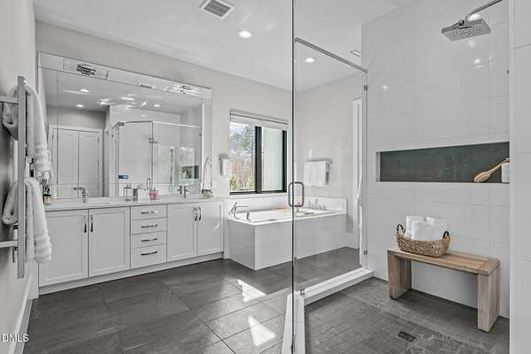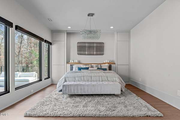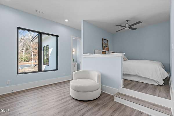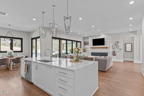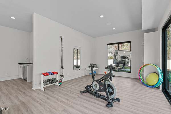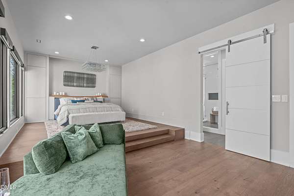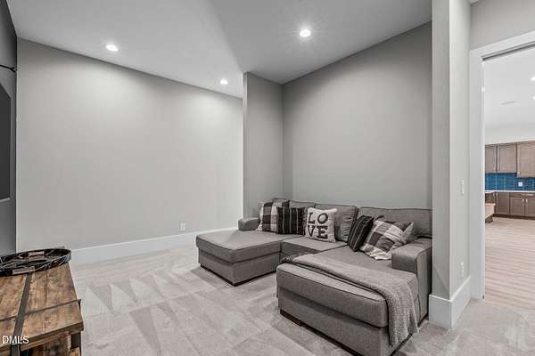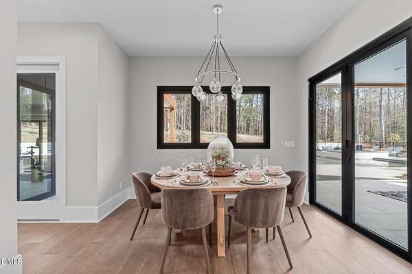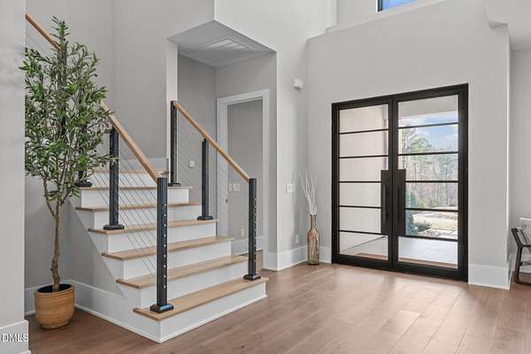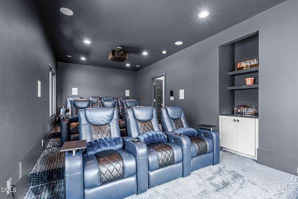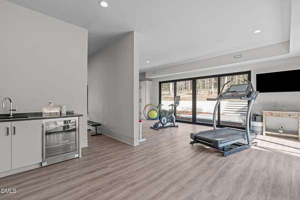 Welcome to 394 Carolina Crossing, where modern design meets resort style living on just over 2.5 private acres in Apex. Entertaining is a breeze with alomost 7,000 sqft of expansive living spaces filled with natural light. Featuring a wine bar, dedicated wellness room with a sauna, and an upstairs loft with its own bar, kitchenette, and full movie theater. The primary suite offers a true retreat with a private hot tub, spa inspired bath with a soaking tub, and a luxurious dressing room with a vanity. Upstairs you'll find 3 additional bedrooms, all with their own en-suite bath. Outdoors, enjoy two spacious decks including a second level covered lounge, a resort style pool and hot tub, and a full basketball and sport court. The home also includes a three car garage.