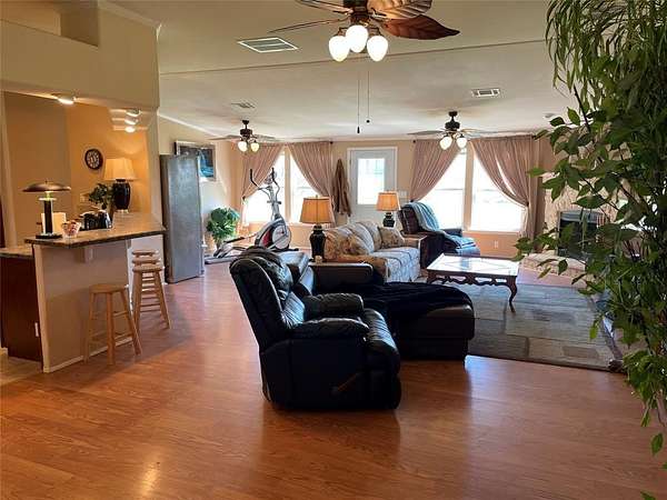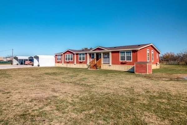 This is an Inviting, Welcoming & Beautiful large home with a terrific property in the desired & growing Pilot Point area. There is No HOA, No city taxes or restrictions & tucked away off the main area. Easy access to newly installed Dallas Parkway down the street. You get a double lot totaling 4 acres with so much. Property is fully fenced with no climb horse fence, 2 driveway entry gates, an expansive drive apron, 7 vehicles under cover parking, a workshop with electric & water access with a carport for working on your projects. There is a well with a programable water conditioner so there are No water bills. This is a customized & comfortable modular home not be mistaken for a mobile as it is an important & distinct difference which is recognized as a site-built home that will be realized once stepping inside. Enjoy the wall of windows looking out back at the wide-open yard, pastures & ponds. There are 2 ponds, one is large & has not gone dry even in the summer that has fish & turtle with wild life that visits & 1 smaller that fills in wet weather. The home is an open concept living, kitchen, dining. There is room to spread out. From a Massive media rm, split bedrooms & 2 primary beds with on-suites. The main primary bed has an office, a large walk-through closet, double vanity, jetted soaking tub & a separate tilted shower. You will see crown molding, ceiling fans & special features throughout to impress. Your animals will be safe and cozy in the insulated barn that has water & electric that has been added. Pasture management is no problem with having 3 pastures. For convenience there are 2 pastures with double gates. The property has mature trees, a storeage cube for stuff, a back patio, side yard privacy fencing material & Hot Tub. Easy country living at it's BEST! There is so much to appreciate here! There is an extensive number of improvements & features that have been added & on a separate list. Come see what this SPECIAL PLACE has to offer you.