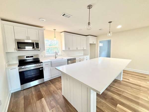 Est $1,272/moGORGEOUS NEW HOME ON 2 QUIET ACRES! This beautiful 3 bedroom 2 bath home has an open floor plan with cathedral ceilings, white shaker cabinets, and gorgeous quartz counters throughout. Beautiful wood beam and black fixtures really show the quality details! Custom wood shelving and a master closet to die for! These are not the actual photos but the same builder/plan. Colors/ materials may vary.