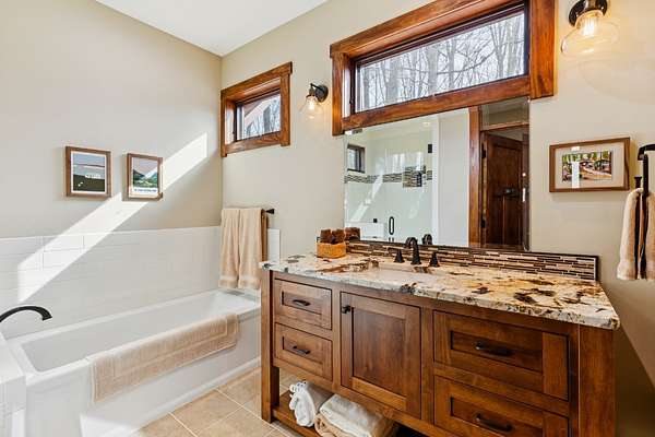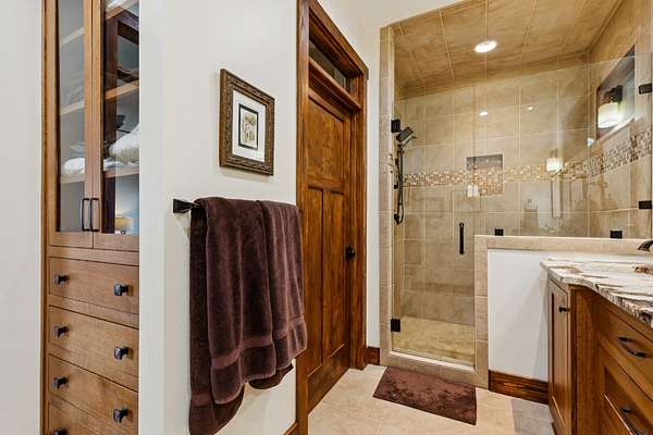 Retreat to the luxurious primary bedroom which offers an attached home office overlooking both lake and bluff views, a spacious bathroom complete with a custom tile shower, double vanities, and built in linen closet. Two additional bedrooms offer generous space for family and guests.