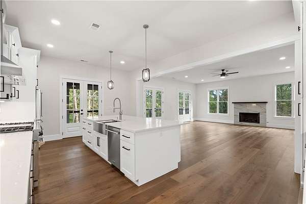 Builder is offering a 1-year warranty! Recent enhancements include a professionally redesigned front yard, expanded driveway, and the addition of over an acre-bringing the total to a stunning 2-acre homesite. Tucked at the end of a quiet cul-de-sac within a private community, this exceptional new construction home in Ball Ground offers the perfect blend of luxury, comfort, and space. A brand-new driveway leads to a spacious three-car garage, complete with an electric vehicle charger. Inside, soaring 10-foot ceilings and an abundance of natural light create an open, airy atmosphere throughout. The chef's kitchen is a true showpiece, featuring a 48-inch gas range, pot filler, wine cooler, and a full suite of new Thor stainless steel appliances. Custom under-cabinet lighting and illuminated glass display cabinetry elevate both function and design, delivering a refined, modern aesthetic. The primary suite on the main level is a private retreat, highlighted by an oversized walk-in closet that truly lives like a "walk-around." The main-level laundry room adds everyday convenience, complete with a built-in dog bath for your four-legged family members. Upstairs, you'll find five generously sized bedrooms, including two connected by a Jack-and-Jill bath, while additional bedrooms each feature their own private en-suite bathrooms-ideal for family and guests alike. The spacious living area flows seamlessly onto a covered rear deck with a beautiful stone fireplace, perfect for year-round entertaining while enjoying seasonal mountain views. The terrace-level basement offers impressive 16-foot spans and endless possibilities-perfect for creating a luxury gym, home theater, game room, or all of the above. Located just minutes from downtown Ball Ground and Jasper, you'll enjoy the charm of small-town living paired with modern conveniences-boutique shopping, local coffeehouses, breweries, and acclaimed dining. With nearby parks, festivals, and easy access to Highway 575, commuting to Canton, Woodstock, and beyond is effortless. 394 Settlers Ridge presents a rare opportunity to experience refined North Georgia living-where luxury, privacy, and lifestyle come together beautifully.