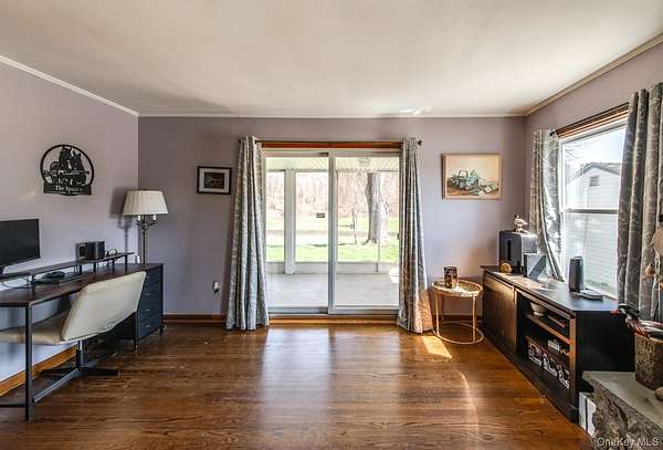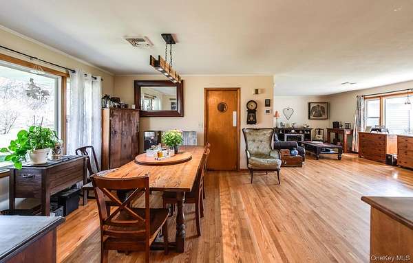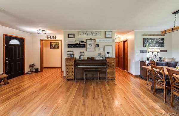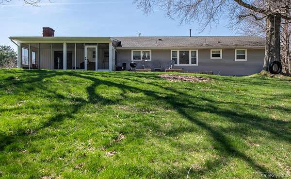 Welcome to 394 Smith Rd. A sprawling Mid-Century Ranch on Nearly 10 Acres with Pond & Panoramic Views. Set on nearly 10 private acres, this picturesque sprawling ranch offers true one-level living with breathtaking 360-degree views, including stunning sunrises and sunsets. Tucked back from the road and elevated for maximum privacy, this special property blends natural beauty and charm. The home features 3 bedrooms and 3 bathrooms with a thoughtfully designed open layout. Enter through the covered front porch into a welcoming foyer that flows seamlessly into a generously sized living room and formal dining room. To the left, you'll find the primary suite with en suite bath, along with two additional bedrooms and a full hall bathroom. To the right, the kitchen offers solid wood cabinetry, a new backsplash, and a unique built-in Murphy table with storage, all reflecting a well-maintained mid-century aesthetic. Beyond the kitchen is a functional mudroom/laundry area with powder room, access to the two-car garage, and entry to the screened-in patio overlooking the pond and scenic trails. The adjacent family room features a cozy stone fireplace and sliding doors that open to the screened porch-perfect for enjoying the serene surroundings. The lower level provides approximately 2,000 square feet of unfinished space with high ceilings, offering endless possibilities for expansion, recreation, or storage. Outdoors, the property shines with rolling hills, open fields, natural walking trails, and a private pond. A paddock area and horse/utility outbuilding-currently used as a "man caveadd versatility for equestrian use, hobbies, or agricultural pursuits. This is more than a home-it is a lifestyle defined by space, privacy, and quiet luxury, all within the Arlington School District.